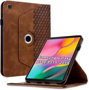 Varohix Case for Samsung Galaxy Tab A 10.1 2019 (SM-T510/T515),360 Degree Rotating PU Leather Folio Protective Case,Card Holder&Shoulder Strap for Woman Man,Brown