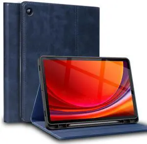 NANRUIL for Samsung Galaxy Tab A8 10.5 inch Case with S Pen Holder 2022 Model(SM-X200/X205/X207) Genuine Leather Cover Protective Shell,Auto Wake/Sleep.Blue