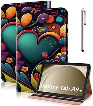 VODEFOX Case for Samsung Galaxy Tab A11 Plus/ A9 Plus 11 Inch, PU Leather Tablet Cases Flip Folio Multi-Angle Viewing Stand Protective Cover with Card Slots - Silver Flower