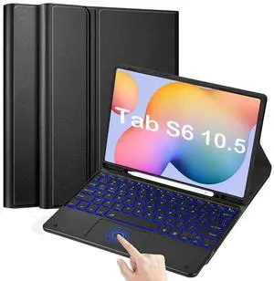 QYiiD Backlit Touchpad Keyboard Case for Galaxy Tab S6 10.5" 2019 (Model SM-T860/T865/T867), [Supports S Pen Charging] Magnetically Detachable Bluetooth Keyboard with PU Leather Stand Cover, Black