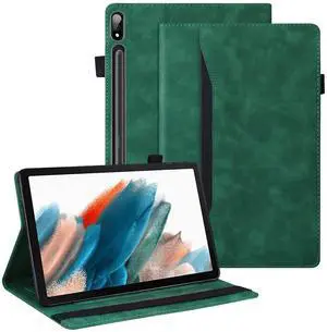 Dteck Case for Samsung Galaxy Tab S8 Plus/S7 FE/S7 Plus, Premium Leather Cover w Document Pocket Folding Stand Cover for Samsung 12.4 Inch Tablet Tab S8+ 2022/S7 FE 2021/Tab S7 Plus 2020, Green