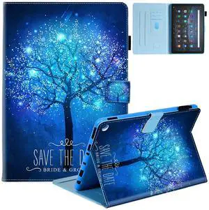 Dteck Case for All-New Fire HD 10 & HD 10 Plus Tablet (2021 Release, 11th Generation) - Multi-Angle Folio Stand Premium Embossed Leather Protective Smart Cover with Auto Wake Sleep, Shine Tree