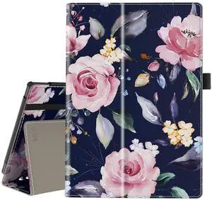 VORI Case for All-New Fire 7 Tablet (Only fit 12th Generation, 2022 Release), Slim Vegan Leather Folio Stand Smart Cover with Hand Strap and Auto Wake/Sleep for Kindle Fire 7, Flower Rose