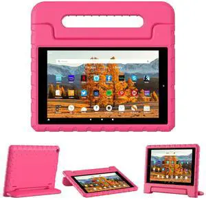 Arrifolua Kids Case for Kindle Fire HD 10 5th/7th/9th Generation 2015/2017/2019 Released, Shockproof Protective Tablet Cases with Adjustable Handle Stand, Rosered