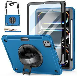 for iPad Pro 11 inch Case 2022/2021/2020/2018 (4th/3rd/2nd/1st) & iPad Air 5th/4th Generation Case 10.9 inch with Adjustable Hand Strap Stand, Pencil Holder, Screen Protector - Blue