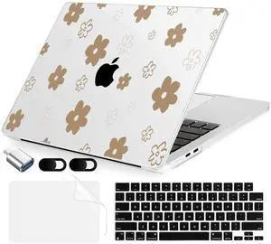 MecBevia Compatible with MacBook Air 13 inch Case, M4 A3240/M3 A3113/M2 A2681 (Released 2025 to 2022), Hard Shell, Keyboard Cover, Screen Protector, Webcam Cover & Type-C Adapter, ColorfulFlowers