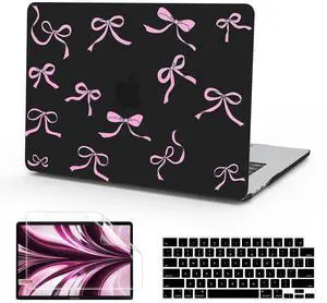 MecBevia Compatible with MacBook Air 13.6 inch Case, M4 A3240/M3 A3113/M2 A2681 (Released 2025 to 2022), Hard Shell, Keyboard Cover, Screen Protector, Webcam Cover & Type-C Adapter, Black Bows