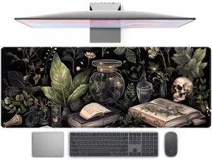 Dark Academia Desk Mat Mouse Pad XL Extended Large Gaming Desk Pad Mousepad, Mystical Green Plant Computer Laptop Keyboard and Mouse Mat, Desktop Protector Mat for Women Girl Office 31.5x11.8 in