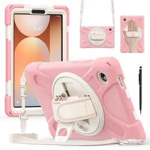 WERLEO Case for Samsung Galaxy Tab A11 Plus / A11+ 11 Inch 2025 SM-X310/X315/X236/X235/X230 Shockporoof Cover with Pencil Holder Rotating Hand Strap & Stand Shoulder Strap, Universal Stylus Pen Pink