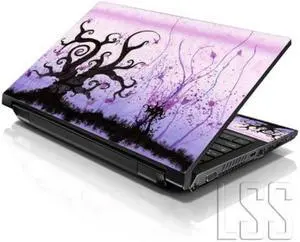 LSS 17 17.3 Inches Laptop Notebook Skin Sticker with 2 Wrist Pads - Reusable Cover Protector Vinyl Sticker Cover Decal Fits 17" - 19" - Futuristic Trees Light Purple Pattern