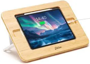 ELETIUO Bamboo Tablet Stand,Multi-Angle Adjustable with Pencil Wireless Charger& Cable Slot,Foldable&Portable for Drawing,Compatible with 9.7"-11" Devices
