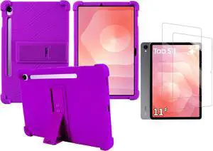 anicestore Case for Samsung Galaxy Tab S11 (11") Tablet with 2PCS Tempered Glass Screen Protector - Full-Body Protective Silicone Kickstand Cover for Samsung Tab S11 (11 inch) SM-X736/SM-X730 (Purple)