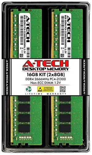 A-Tech 16GB 2x 8GB DDR4 2666 PC4-21300 Desktop 288-Pin DIMM Memory RAM Kit 16G