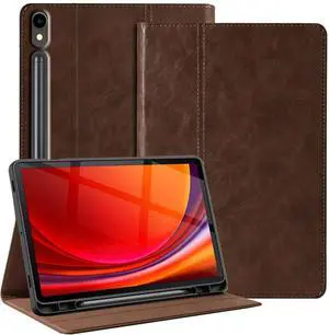 Gexmil Genuine Leather Case for Samsung Galaxy Tab S10 Plus/S9 Plus/S9 FE+ 12.4 Inch with Pencil Holder,Shockproof Protective Adjustable Kickstand Smart Folio Flip Tablet Cover, Dark Brown