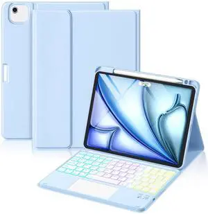Hamile for iPad Air 11 Inch & Air 5th 4th Generation Case with Keyboard - Multi-Touch Trackpad, 7 Colors Backlit, Detachable Stain Proof Folio Cover for iPad Pro 11-in 4th 3rd 2nd 1st Gen, Sky Blue