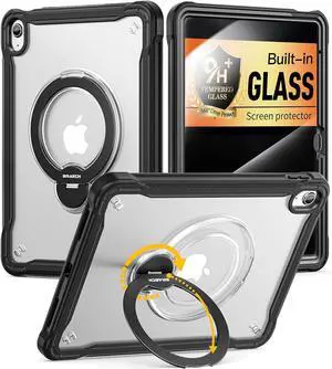 Case for iPad (A16) 11th/10th Generation 11/10.9 inch 2025/2022 Built-in Tempered Glass Screen Protector 360°Spin Stand Kickstand Handle Slim Fit Durable Stable Rugged Shockproof Dropproof