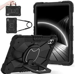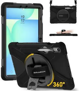Case for Sam-sung Galaxy Tab S10 Lite/S10 FE/S9 FE 5G 10.9"& S9/S8/S7 11",Heavy Duty Shockproof Silicone Cover with 360 Rotating Stand &Hand Strap, Kickstand, Shoulder Strap, S Pen Holder, Black