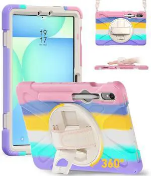 for Sam-sung Galaxy Tab S10+ Plus/S9+/S9 FE + /S8+ Plus/S7 +Plus /S7 FE 12.4 Inch,Heavy Duty Shockproof Case with S Pen Holder&360 Rotating Hand Strap/Kickstand/Shoulder Strap -Rainbow