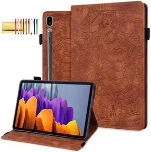 Folio Case for Samsung Galaxy Tab S9+/S8+/S7+ 12.4", Techcircle Mandala Embossed PU Leather Stand Soft Back Cover Slim Light Elastic Band Protective Case w/Card Slots+Pen Holder, Brown