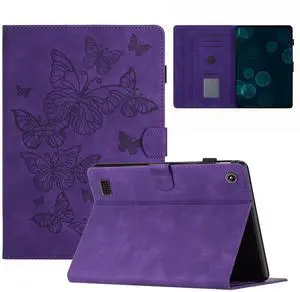 Dteck Cute Butterfly Case for Fire 7 (9th/7th/5th Generation) Tablet 7" 2019/2017/2015 Released, PU Leather Protective Case with Auto Sleep Wake, Foldable Stand, Card Slots, Slim Folio Cover, Purple