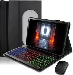 SAMTUNK Case Keyboard for Google Pixel Tablet 11 inch 2023/2024 Cover - 7 Color Rainbow Change Backlit Detachable Magnetic Keyboard with Mouse - Black