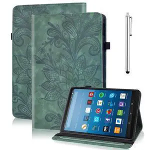 TUOLISG for Kindle Fire HD 8 Tablet Case 8th/7th/6th Generation 8 inch with Card Slots, Flower Pattern Embossed PU Leather Folio Wallet Case for Kindle Fire HD 8 2018/2017/2016, Green