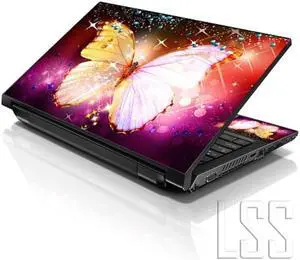 LSS 15 15.6 Inches Laptop Notebook Skin Sticker with 2 Wrist Pads - Reusable Cover Protector Vinyl Sticker Cover Decal Fits 13" - 16" - Sparkling Butterfly Pattern