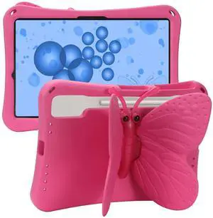 Dteck Kids Case for Samsung Galaxy Tab S10 Plus/S9/S8/S7 FE/S7 Plus 5G, Cute Butterfly Kids Case with Lightweight Rotating Stand & Shockproof Rugged Heavy Duty Girl Cover, Rose