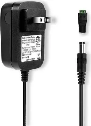 12Volt Power Supply 2Amp AC/DC Adapter Transformer 100-240 50/60Hz to DC 12V 2Amp Power Adapter Cord 5.5mm x 2.5mm US Plug for dc12v LED Strip Light CCTV Camera