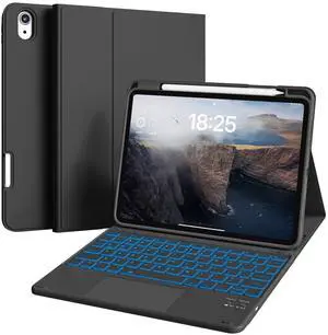 GKABXY for iPad (A16) 11th/10th Gen Case with Keyboard - 7 Colors Backlit,Multi-Touch Trackpad,Detachable Keyboard Cover with Pencil Holder for iPad A16 11 inch 2025/10th 10.9 Inch 2022 (Black)