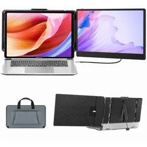 Laptop Screen Extender, 14" FHD 1080P IPS Portable Monitor, Built-in Speaker, Dual Screen Extender for 13"-17" Laptops, HDMI/USB-A/Type-C Plug and Play for Windows/Mac/Chrome/Android/PS5