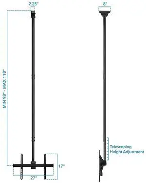 Mount-It! Ceiling TV Mount | Fits 32"-77" TVs | Adjustable Extra Long 10 Feet Long