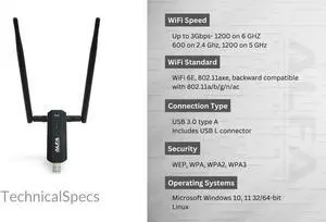 ALFA AWUS036AXER 802.11ax WiFi 6 1200 Mbps Dual Band 2x2 MIMO WiFi USB Dongle