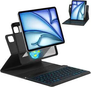 QYiiD New iPad Pro 13 Inch (2024) Case with Keyboard, Magnetic Keyboard with Multi-Touch Trackpad, Backlit Magnetic Wireless Keyboard Case with Easy-Set Magnetic Portrait/Landscape Stand, Black