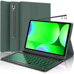 Keyboard Case for Samsung Galaxy Tab S10 FE/ S10 Lite 10.9 Inch, S9 FE Smart Backlit Keyboard case with Pen Holder for Tab S9 S8 S7 11", Green