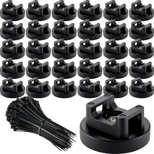 180 Pieces Magnetic Zip Tie Mount Multipurpose Cable Holder Magnets Magnetic Wire Management Bases with Heavy Duty Zip Mount Nylon Cable Ties in Total (31mm)