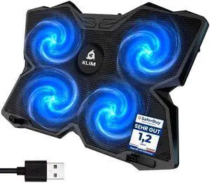 KLIM Wind Laptop Cooling Pad - More Than 500 000 Units Sold - New Version - The Most Powerful Rapid Action Cooling Fan - Laptop Stand with 4 Cooling Fans at 1200 RPM - USB Fan - PS5 PS4 - Blue
