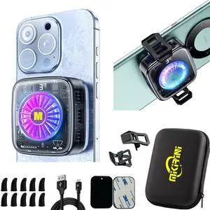 Phone Cooler for Gaming, Low Noise USB Cell Phone Cooler with Smart Temp Control, Phone Cooling Fan with RGB LED Lights, Magnetic Ring & Clip Fan for Phone Gaming & Streaming