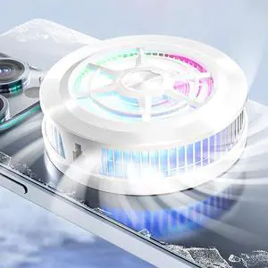 Phone Cooler, Magnetic Fan Small USB Fan for Gaming with Removable Grip, Semiconductor Cooling RGB Cellphone Radiator for Cell iPhone Ipad (ICE S2-White)
