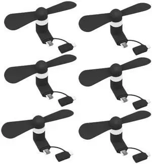 Cell Phone Fan for iPhone and Micro USB Cell Phone, Compatible for iPhone 4/5/6/6S/7/8 Plus, X, XS Max, XR, 11/12/13/14 Mini Plus Pro Max SE 2/3, Not for iPhone 15/16 and Latest Series (Black x6)