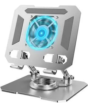 Laptop Cooling Stand with Turbo Fan, 360° Rotating Adjustable Height & Angle, Foldable Aluminum Ergonomic Notebook Riser for 1017 inch Laptops (Space Silver)