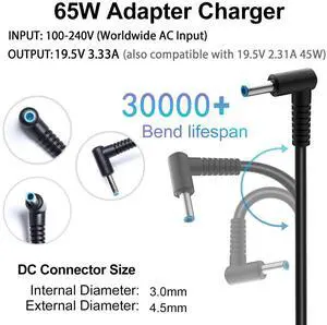 65W Laptop Charger Compatible with Pavilion x360 14 15 17, Envy 13 15 X360, Elitebook 840 G5, ProBook Chromebook Stream Series, Spectre 710412-001 19.5V 3.33A Adapter