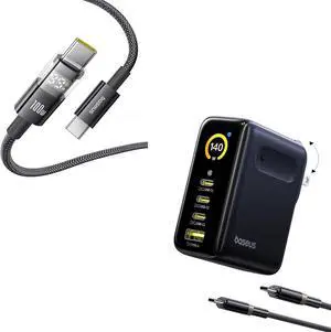 Baseus Picogo 140W USB C Charger, 4-Port Multi-Device Fast Charging Laptop Charger and Baseus USBC Cable, 100W 5A Fast Charging USBC Charger Cable with LED Display