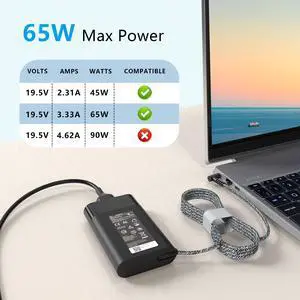 Slim 65W Laptop charger for x360 13-4193nr 15t-ap000 15-ap001nx, ProBook X360 11 450 650 640 G1 G2 G3 G4 G5 G6 G7, Stream Pavilion X360 Blue Tip Power Supply Cord