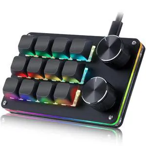 Programmable Keypad, One Handed Programmable Mechanical Keyboard, RGB Blue Switch Hot Swappable, 12 Keys 2 Knob Backlit Keypad for Working and Gaming, Black