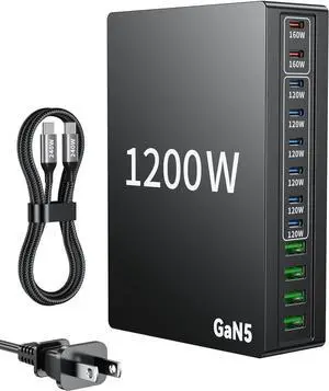 1200W USB C Charger Block Charging Station 12 Port Fast Chager 140W PD PPS AVS HUB Laptop MacBook Charger Compatible with All iPhone 17 Pro Max/17 Air/16 SE/Samsung Galaxy 25/ MacBook Pro/Air/iPad Pro