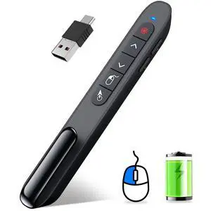 Wireless Presenter Remote with Air Mouse Control, Rechargeable USB A&C Presentation Clicker PPT Pointer RF 2.4GhZ PowerPoint Clicker Slide Advancer for Computer Laptop Mac