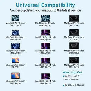 Charger 96W USB-C Fast Charger Stable Output Power Adapter for 16, 15, 14, 13 Inch M4 M3 M2 M1 from 2017-2025, Include 6.6ft Cable as Fast as Original Quality