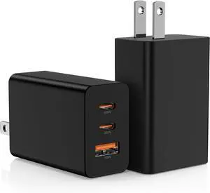 2Pack 65W USB C Wall Charger Block 3-Port USB C Charging Adapter 100W Type C Super Fast Charging Power Plug Cube for MacBook Pro/Air i-Pad Pro i-Phone 17/16/15 Galaxy S25 and More-Black?