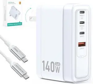 100W USB C Charger Block,4-Port GaN Fast Charger Compatible with MacBook Pro, MacBook Air, Google Pixelbook, ThinkPad, Dell XPS, iPad Pro, Galaxy iPhone All USB C Devices 6ft